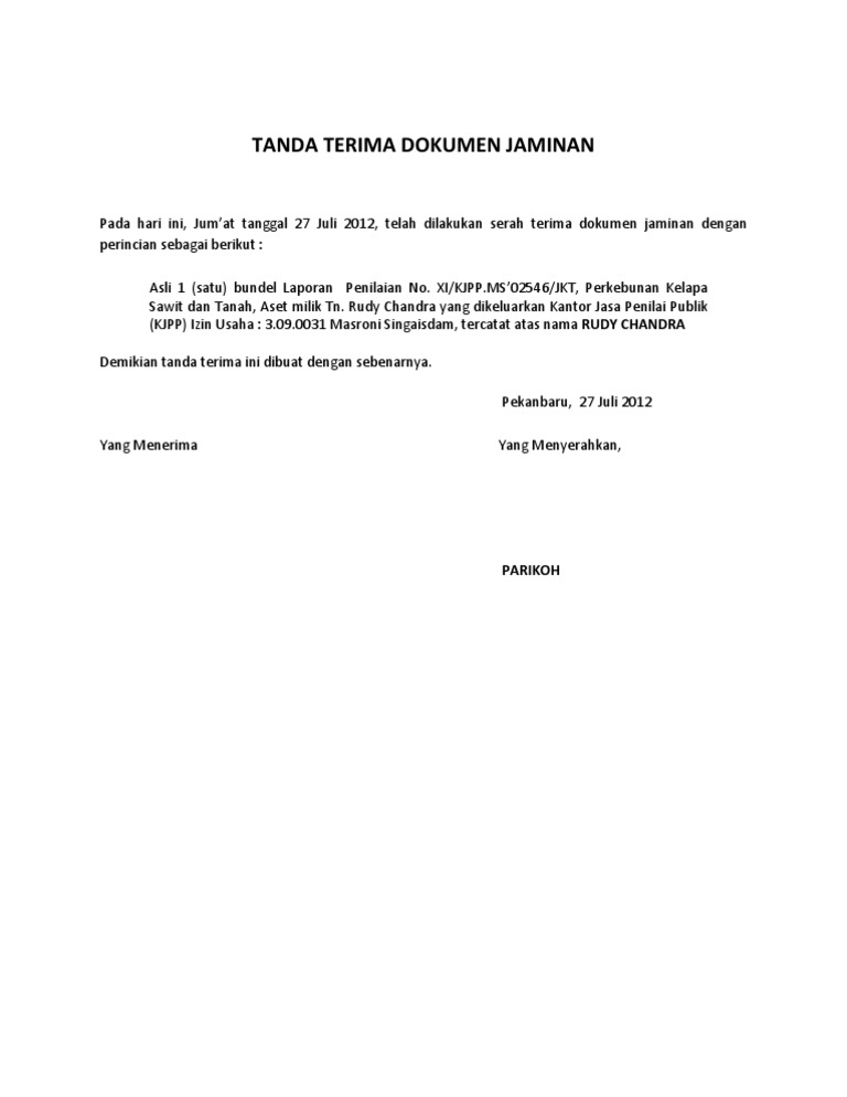 Dokumen tersebut ialah tanda terima. This file tanda terima dokumen.pdf is hosted at free file sharing service 4shared. Uny yogyakarta 7 in 1. Tanda terima dokumen tanda terima ini dibuat di jl. Berikut ini adalah contoh tanda terima dokumen berupa jaminan yang pernah diserahkan kepada bank.
